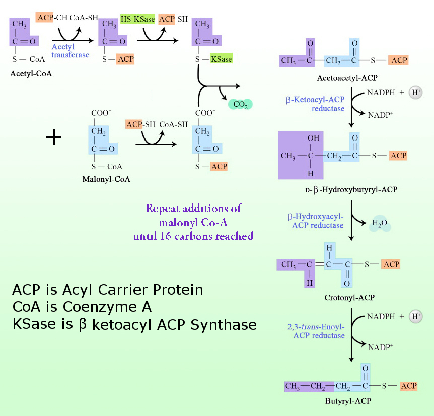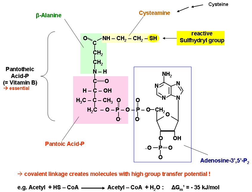 carbon, via Coenzyme A (which is H-S-CoA) as