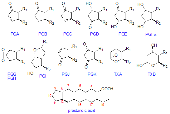 of fatty acids to the prostaglandins above, which have a 5 carbon oxygenated