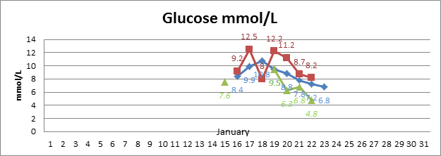 Back on Gliclazide in November 2013 taking 40mg morning and evening. Operation on foot September 2014 (not diabetes connected) blood sugars increased.